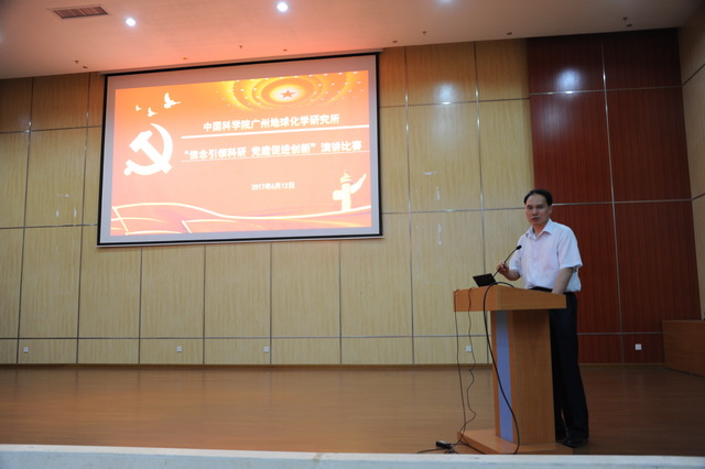 为深入贯彻党的十八届六中全会精神,推动“两学一做”学习教育常态化制度化,在广大党员中营造崇尚先进、学习先进、争做先进的良好氛围,6月12日下午,中国科学院广州地球化学研究所举办建党96周年系列活动之“信念引领科研 党建促进创新”演讲比赛,来自在职、研究生党支部的15名党员同志参加了比赛。广州分院分党组副书记、纪检组组长周传忠到会指导。所长徐义刚,党委书记、副所长何宏平,副所长张干,党委副书记、纪委书记夏群燕,党委委员、纪委委员,在职党支部全体党员,离退休、研究生党员代表近200人参加了活动。比赛由何宏平主持。