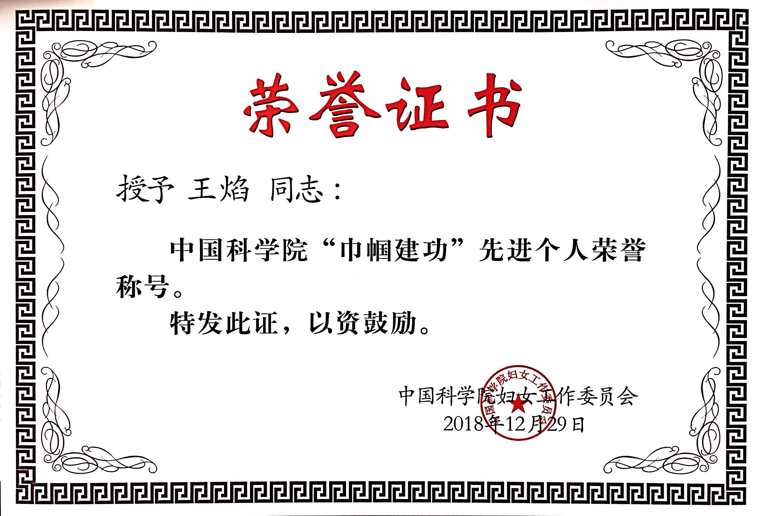 3月5日,“巾帼追梦新时代”—2019粤港澳女职工庆祝“三八”国际劳动妇女节主题活动暨先进女职工集体和个人表彰大会在广州举行,中国科学院广州地球化学研究所矿物学与成矿学院重点实验室主任王焰研究员被授予“全国五一巾帼标兵”荣誉称号。3月6日,由中科院妇工委在北京举办的“不忘初心跟党走 牢记使命建新功”主题诗歌朗诵会暨表彰大会上,王焰获中科院“巾帼建功”先进个人荣誉称号。