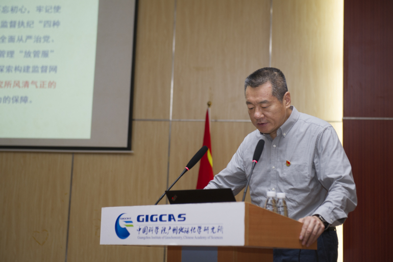 最后,陈广浩代表广州分院分党组对大会的顺利召开和新当选的两委委员表示祝贺,对上一届党委、纪委班子的辛勤努力和付出表示感谢,并对新一届党委、纪委班子提出了三点希望和要求:一是要始终坚持把党的政治建设摆在首位,把全面从严治党引向深入;二是要充分发挥党建引领作用,促进党建与中心工作深度融合;三是要高质量推进基层组织建设,打造坚固战斗堡垒。他希望党委、纪委班子同心同德,同向同行,不辜负广大党员群众的期望,以饱满的精神状态,更加扎实的工作作风,不断提高广州地化所的党建工作水平,努力强化“国家队”“国家人”意识,心系“国家事”、肩扛“国家责”,以优异成绩迎接建党100周年。