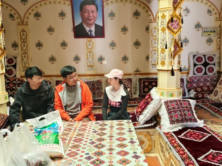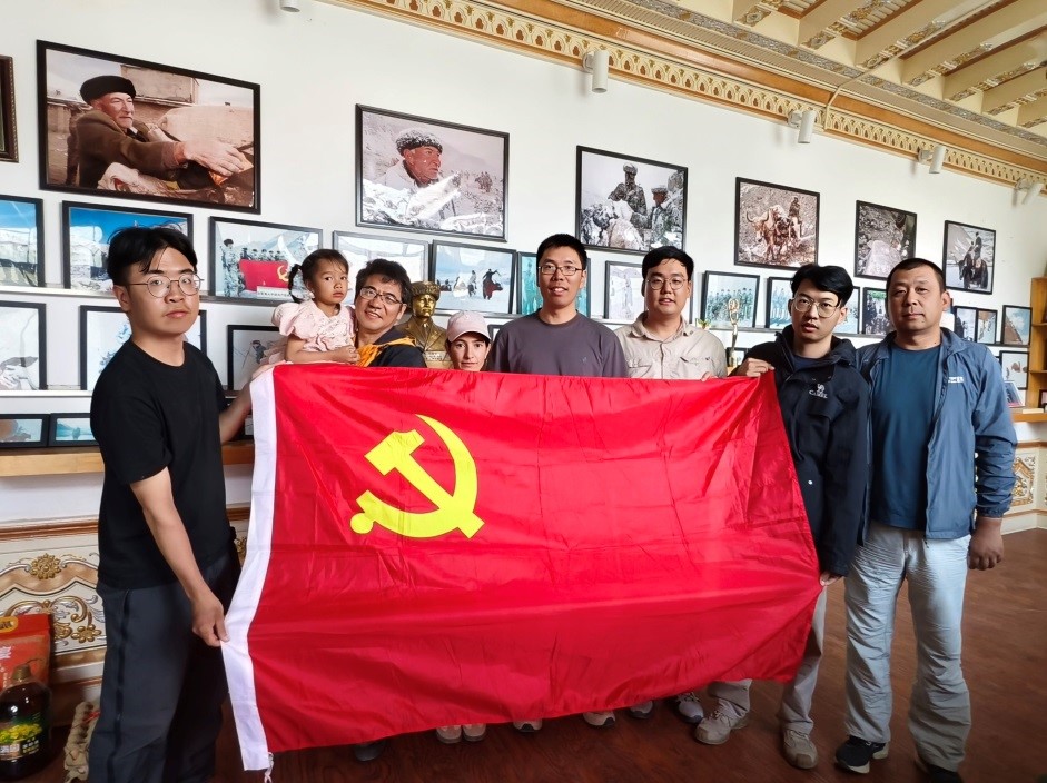 为响应我党学习时代楷模精神的号召、深化理想信念教育、提高青年团干思想政治站位,2025年6月28日,广州地化所团委委派在新疆塔什库尔干县开展野外科考工作的深地第三团支部支委沈明宏、蔡铭泽携广州分院优秀共产党员、2023年“中国科学院年度创新人物”王核研究员、青年代表孙志强,走访慰问时代楷模拉齐尼·巴依卡遗属。这趟跨越万里的行程,开启了“岭南昆仑心连心”的感人篇章。