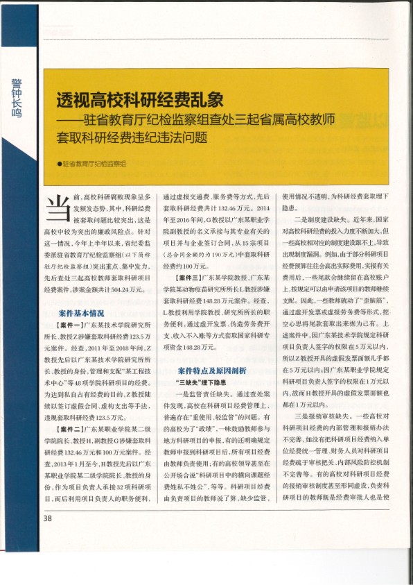 驻教育厅纪检监察组查处三起省属高校教师套取科研经费违纪违法问题