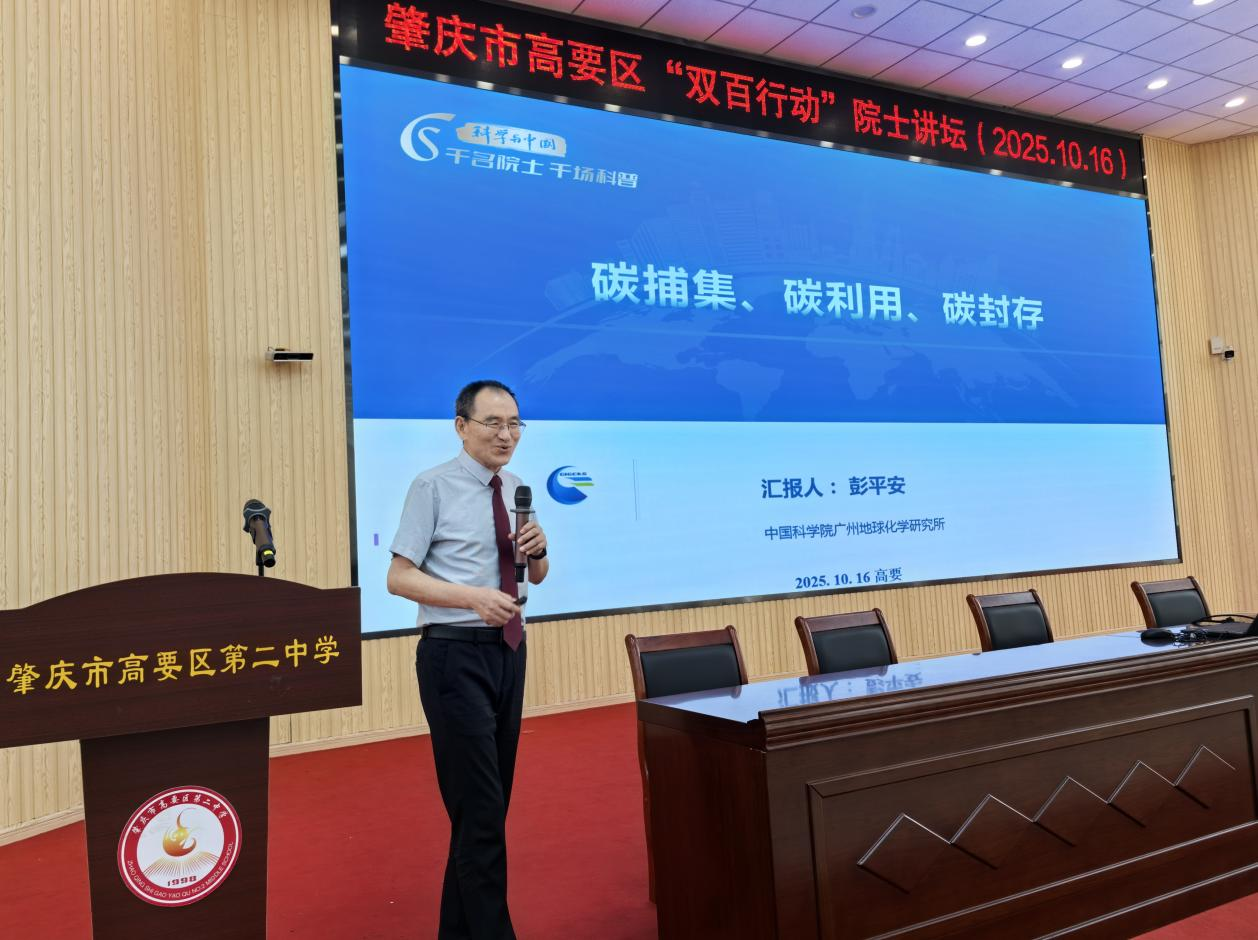 10月16日,肇庆市高要区“双百行动”院士讲坛在高要二中教育集团总校报告厅隆重举行。本次讲坛邀请到了中国科学院院士、中国科学院广州地球化学研究所研究员彭平安,为二中学子带来了一场关于“碳中和”前沿科技的智慧盛宴。肇庆市科协主席黄梅芬、高要区教育局局长黄晓彬、高要区科协主席唐金花等领导出席了本次活动。