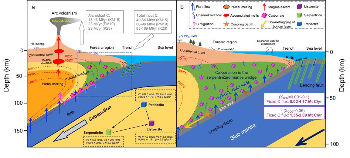 图2. 俯冲带弧前地幔楔中的蛇纹岩碳酸盐化 (Wu et al., 2025 GCA)