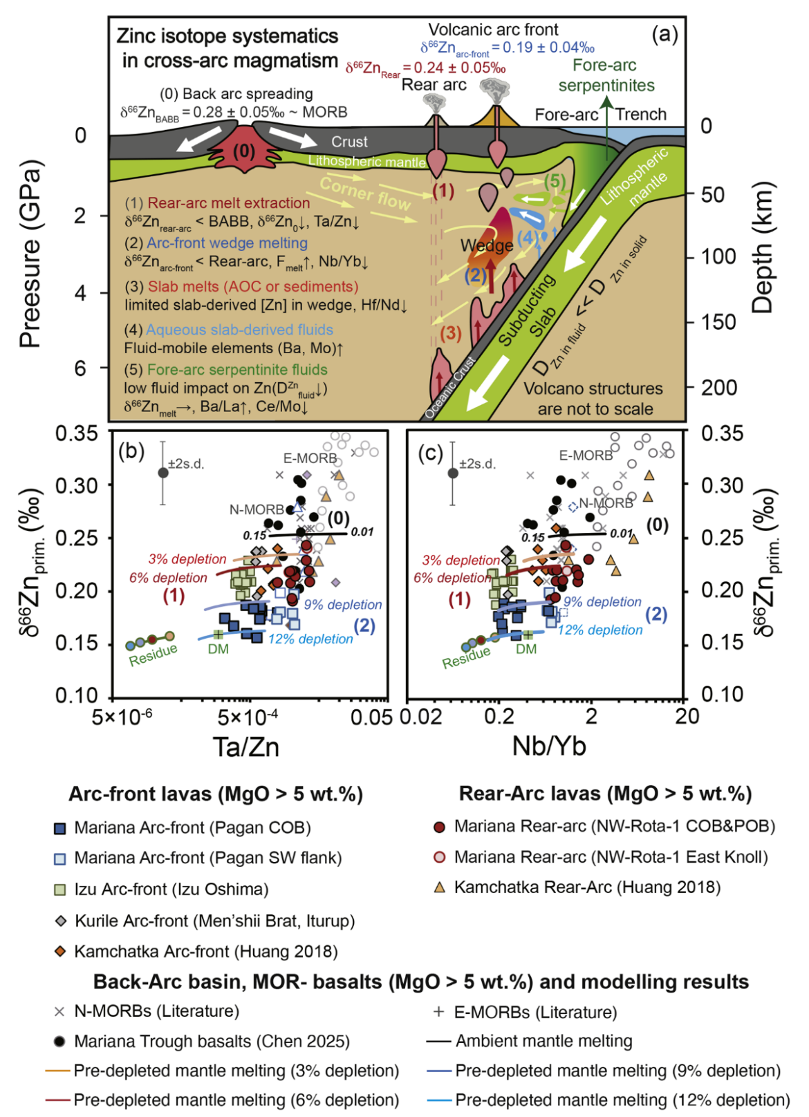 文章信息:Yang, C. (杨春), Li, H.-Y.* (李洪颜), Liu, S.-A. (刘盛遨), Tamura, Y., Smirnov, S., Ryan, J.G., Xu, Y.-G. (徐义刚), 2026. Control of mantle infertility on cross-arc geochemical diversity revealed by zinc isotope systematics. Earth and Planetary Science Letters 684, 120011. https://doi.org/10.1016/j.epsl.2026.120011