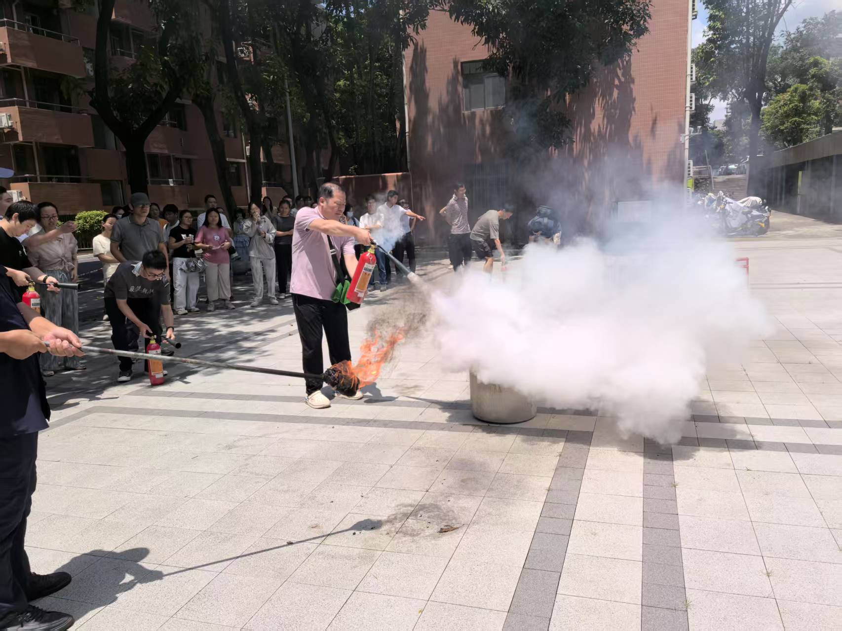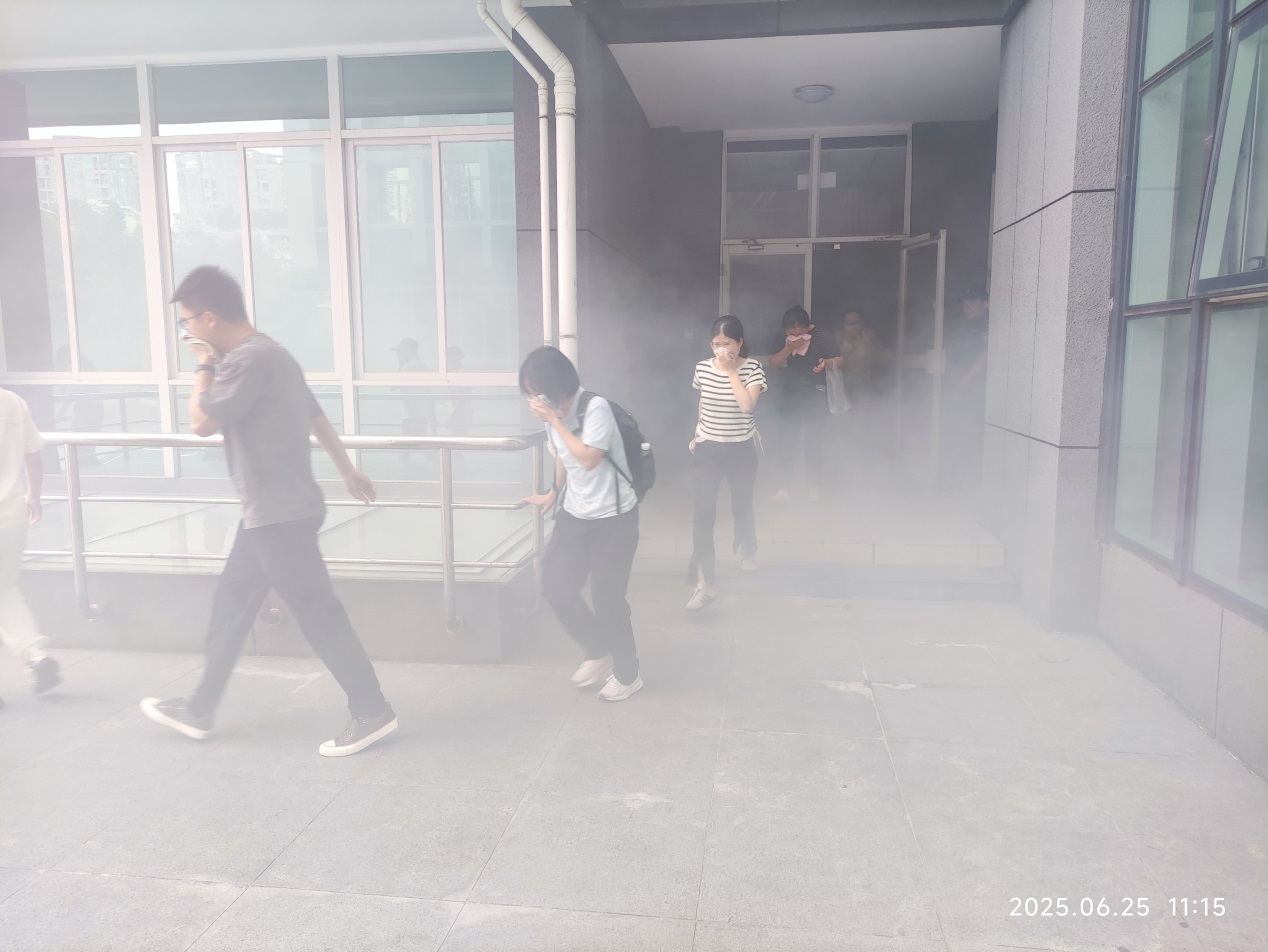 理论培训结束后,参训职工、研究生立即投入到紧张而有序的逃生演练和灭火演练活动中。在逃生演练现场,模拟火灾警报拉响,师生们迅速按照所学的逃生技巧,用湿毛巾捂住口鼻,弯腰沿着预定的逃生路线有序撤离,整个过程紧张有序、有条不紊。灭火实操演练环节,在江伟锋的细致指导下,参训的职工和研究生亲自操作灭火器对模拟火源进行扑救。从拔掉保险销、握住喷管对准火焰根部,到压下把手喷射灭火,一步步将理论知识转化为实际操作能力,切实提升了应对火灾的实战水平。