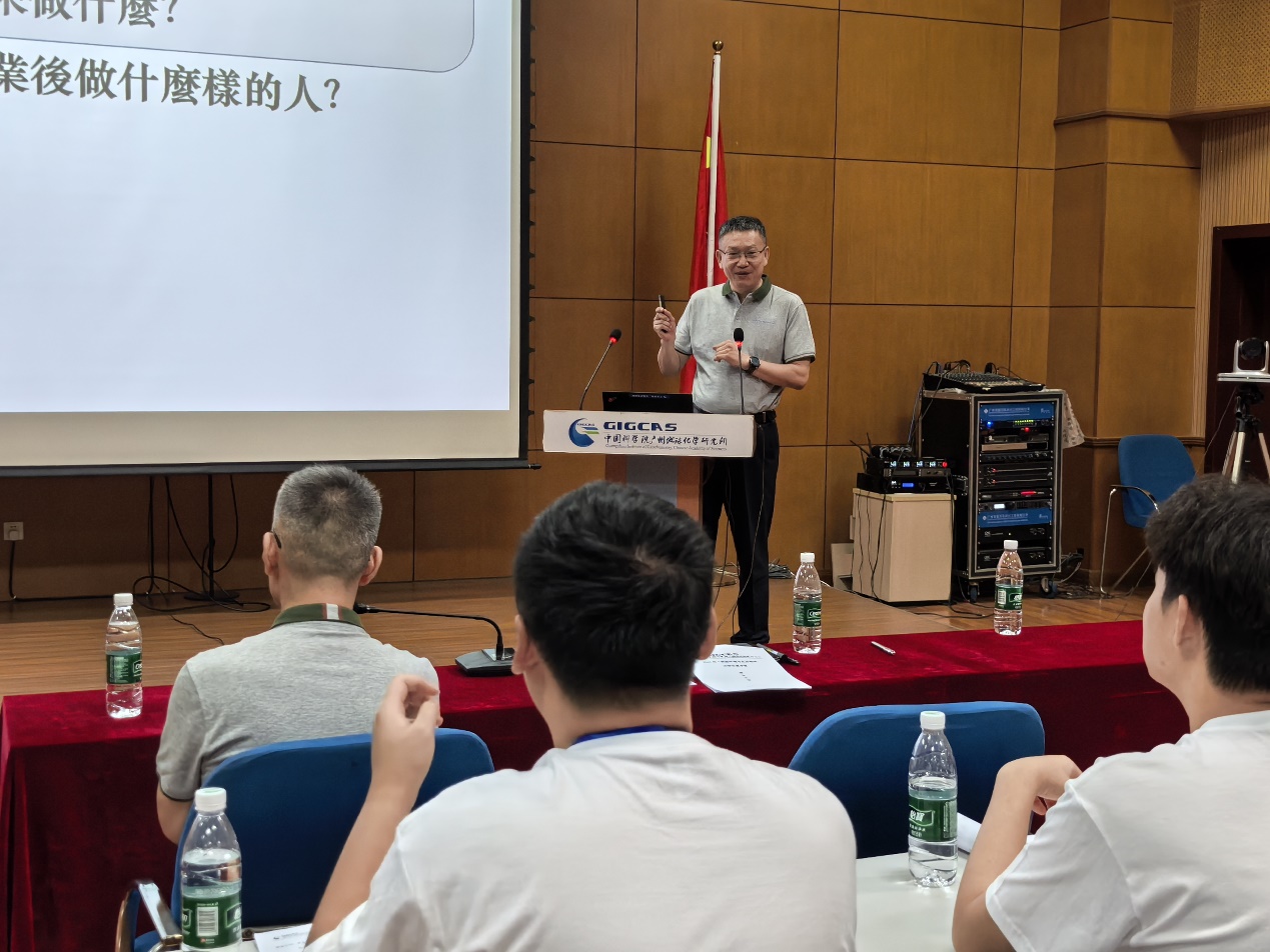 随后,副所长朱建喜给营员做研究所情况介绍。他结合参加2025年国科大毕业典礼的感受,建议营员思考“我们是谁”“我们为谁”“我们咋做”,鼓励青年学子立志成为国之栋梁,从“离科学最近的地方”扬帆报国之路。他介绍了广州地化所的历史沿革、研究领域、科研平台、人才队伍、创新文化及成果产出等,欢迎同学们加入广州地化所。
