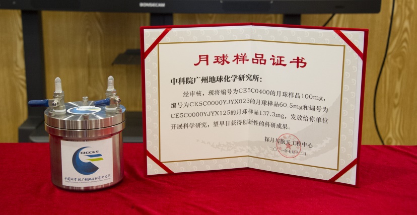 7月12日,国家航天局探月与航天工程中心在北京举行嫦娥五号任务第一批月球科研样品发放仪式,来自全国13所科研机构的31份申请获得通过,共获得首批发放月球样品17.4764克,标志着月球样品科学研究工作正式启动。