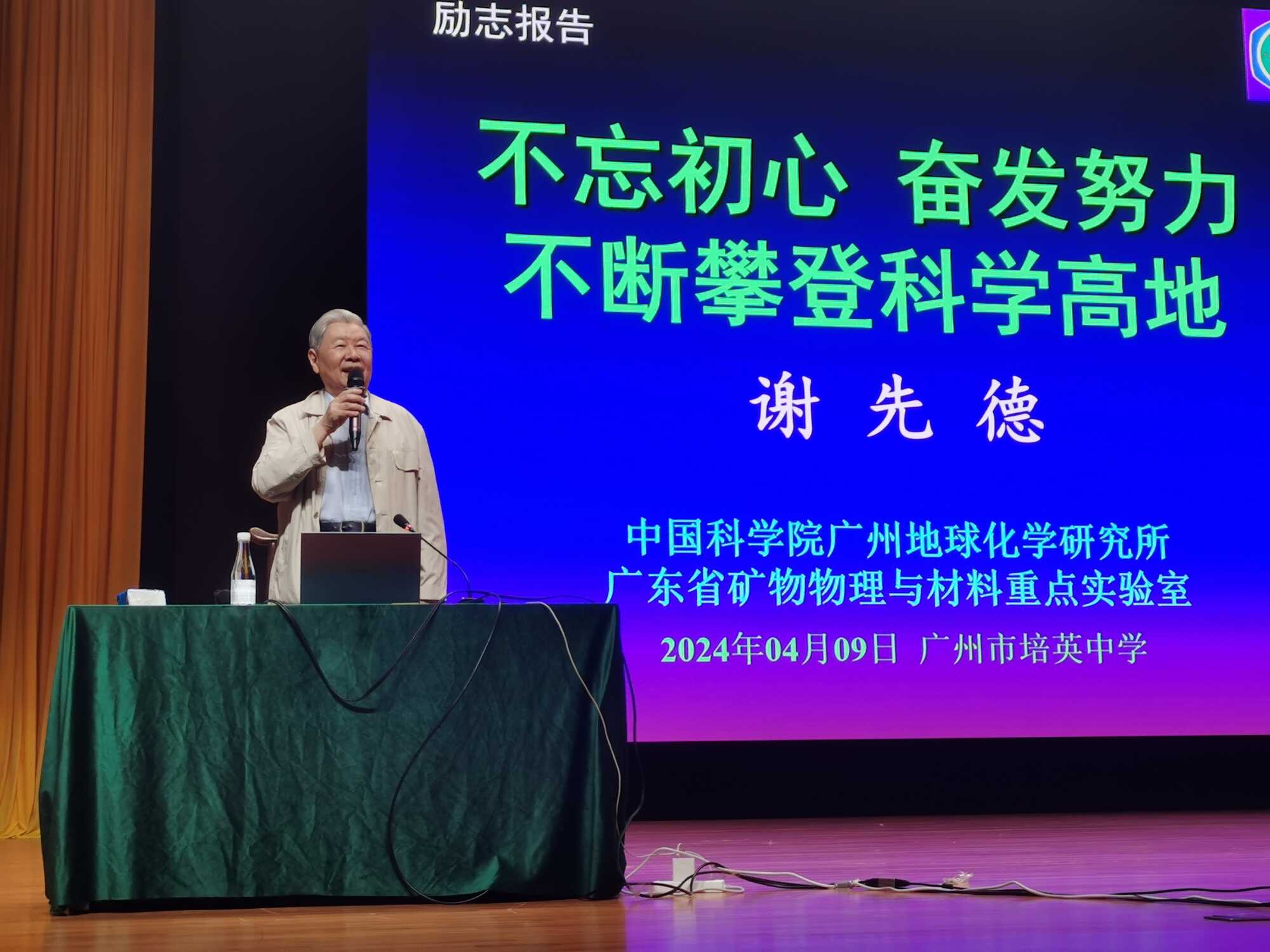 4月9日,广州市培英中学举办第64期“白绿大讲堂”活动,特邀中国科学院广州地球化学研究所谢先德院士担任主讲嘉宾,讲座主题为《不忘初心 奋发努力 不断攀登科学高地》,现场坐满了老师和学生。