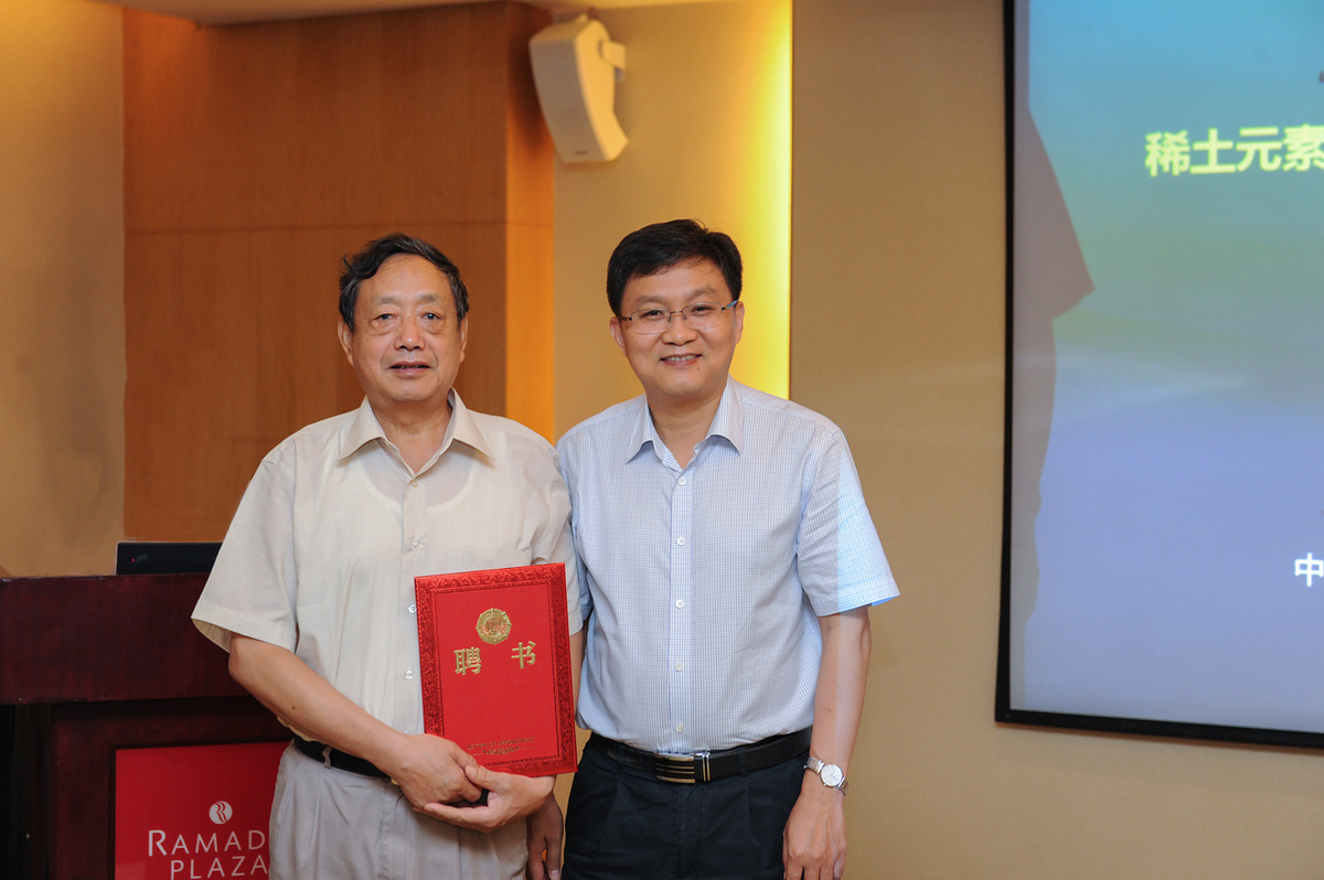 中科院广州地球化学研究所徐义刚所长为项目专家组组长翟明国院士颁发聘书