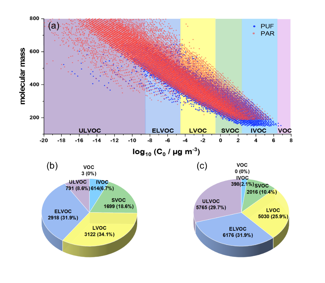 图4. 城市大气气相和颗粒相分子不同挥发性化合物的分布