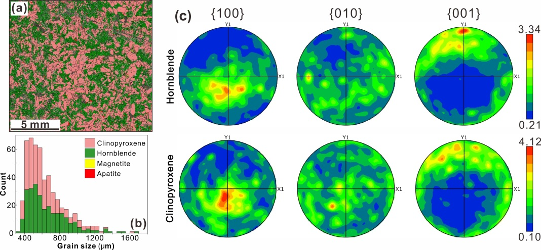 图1 辉石角闪石岩电子背散射衍射(EBSD)分析结果