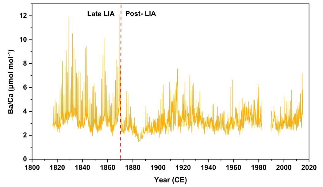 Deng, G. (邓广超), Chen, X. (陈雪霏), Kang, H. (康慧凌), Wei, G. (韦刚健), Deng, W. (邓文峰)*, 2026. Monthly-resolved coral Ba/Ca evidence for a post-Little Ice Age decline in Asian dust delivery to the western Pacific. Journal of Geophysical Research: Atmospheres, 131, e2025JD045088. https://doi.org/10.1029/2025JD045088.